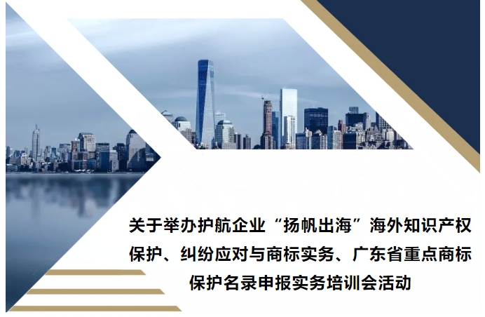 • 關于舉辦護航企業“揚帆出海”海外知識產權保護、糾紛應對與商標實務、廣東省重點商標保護名錄申報實務培訓會活動